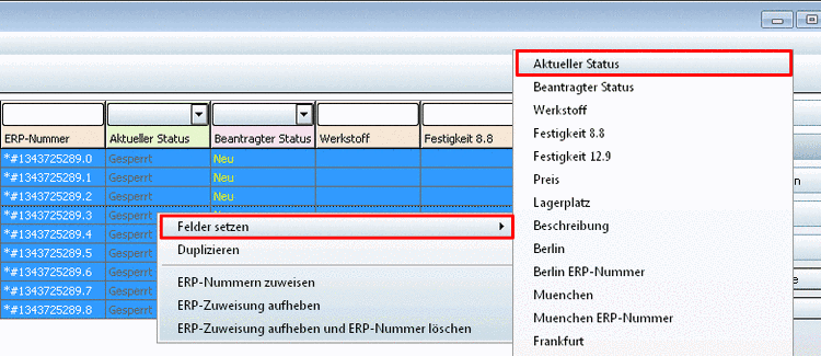 Markieren Sie erneut alle Datensätze und klicken Sie im Kontextmenü auf Felder setzen -> Aktueller Status.