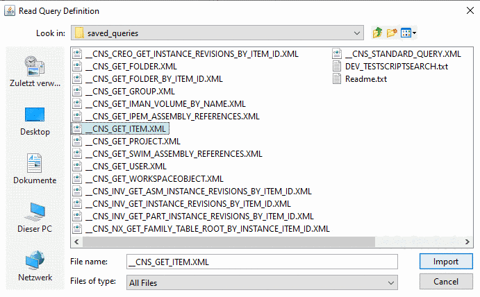$CADENAS\iface\plm\teamcenter\saved_queries\Click and the script will be inserted in Teamcenter's "Query Builder".