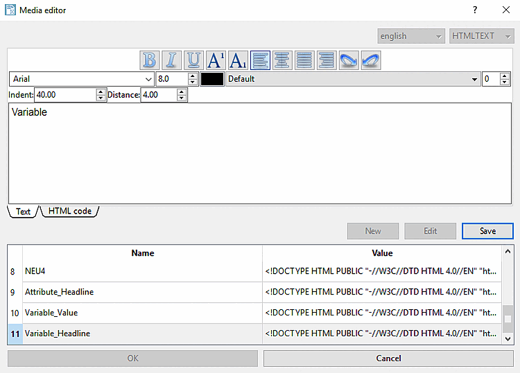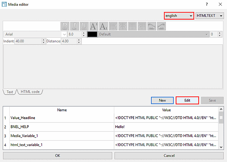 Variable, stellen Sie oben im Listenfeld die gewünschte Sprache ein