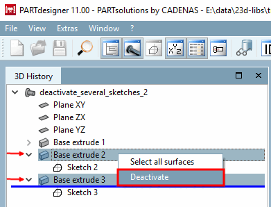Markieren Sie die gewünschten Base extrude und klicken Sie den Kontextmenübefehl Deaktivieren [Deactivate].