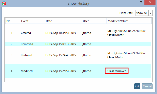 Selektieren Sie im Verlauf ein entsprechendes Ereignis vor der zurückzuführenden Änderung und bestätigen Sie mit .