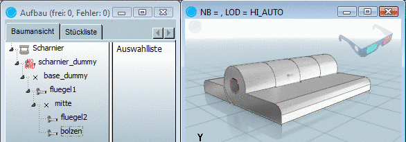 --> Das Startelement wird in der Baumansicht als Unterverzeichnis des Projekts (hier "Scharnier") angezeigt.