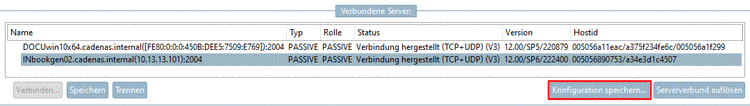 Speichern Sie die Konfiguration in Form einer json-Datei. Öffnen Sie die Datei im Notepad. Der erste Eintrag unter "hostids" zeigt die Mac-Adresse des Servers. Auf diese Weise können Sie diese remote ermitteln. Sie wird für das Ausstellen der Lizenz benötigt.
