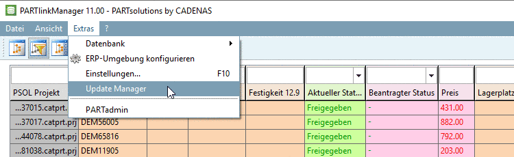 Starten Sie im PARTlinkManager den Update Manager mit Klick auf die Schaltfläche Update Manager.