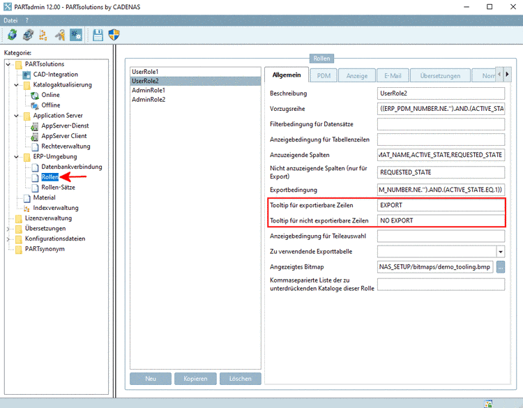 Rollen -> Reiter Allgemein -> Tooltip für exportierbare Zeilen