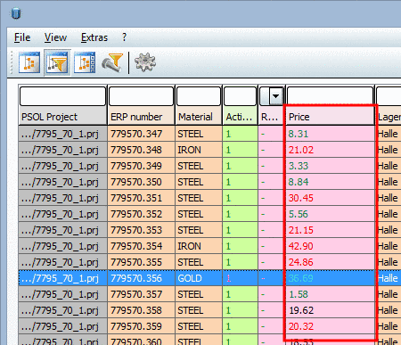 Setting in user interface under PARTlinkManager -> Extras menu -> Configure dialog box -> PARTlinkManager preferences tab -> Adjust table values -> Adjust color with condition