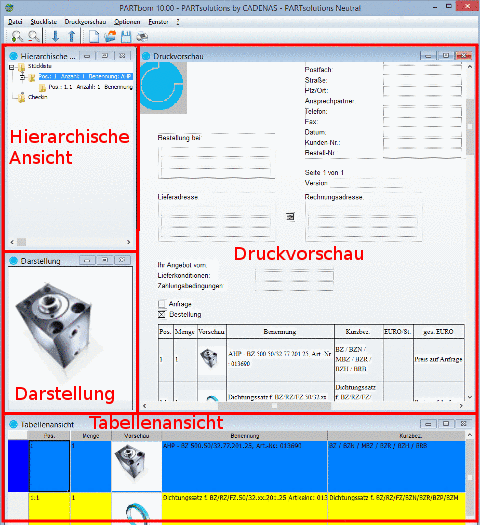• Darstellung (3D-Vorschaubild) des jeweils angewählten Elements in der Stückliste
