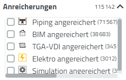 Bei Auswahl von Filtersuche über alle Kataloge sind die initialen Suchergebnisse noch gänzlich unspezifisch; bei allen anderen Auswahlen sind die der gewählten Kategorie entsprechenden Kataloge bereits vorselektiert und die angezeigten Suchergebnisse bereits entsprechend der Vorauswahl gefiltert.