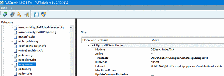 Außerdem muss der Task UpdateDBSearchIndex in der plinkcommon.cfg konfiguriert werden. Zur TimeTable muss der Trigger OnCatalogChanged hinzugefügt werden.