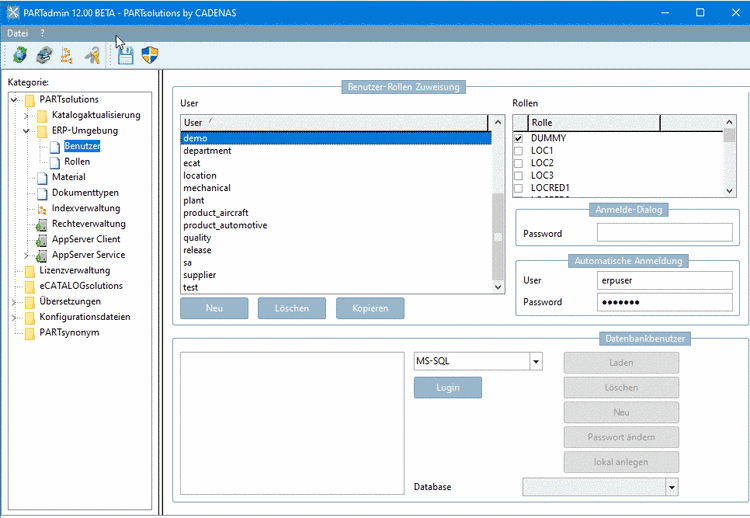 Wichtig ist auch, dass der AppServer Zugriff auf die Datenbank hat und Autologin für den AppServer aktiviert ist. Dazu muss dem User, unter dem der AppServer läuft, eine Konfiguration zugewiesen werden.