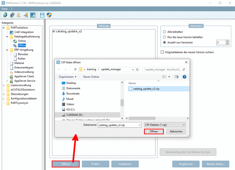 Standardmäßig wird Ihnen ein Katalogupdate über PARTadmin -> Kategorie Katalogaktualisierung -> Online zur Verfügung gestellt. Sofern Sie das Update als CIP-Datei zur Verfügung haben, können Sie auch die Offline-Variante wählen.