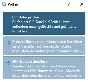 Hier im vorliegenden Beispiel verwenden wir die Option CIP Datei prüfen und wählen die Registerseite Status.