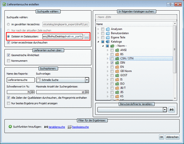 Wir führen die Volltextsuche mit folgenden Einstellungen durch:
