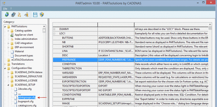 Some special settings can only be made via PARTadmin -> category Configuration files -> $CADENAS_SETUP -> plinkgroups.cfg.