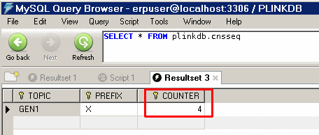 LinkDB wird in der Tabelle "CNSSEQ" der jeweils nächste Zähler für die