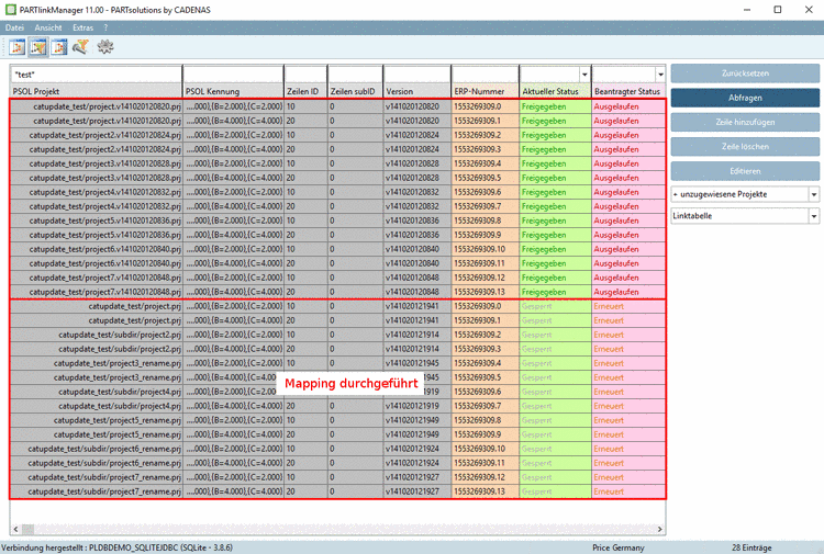 Mapping erfolgreich durchgeführt (d.h., ein Datensatz für die