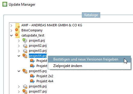 Im Update Manager wird die komplette Katalogstruktur angezeigt. Einzelne Projekte oder ganze Verzeichnisse können selektiert und bearbeitet werden.