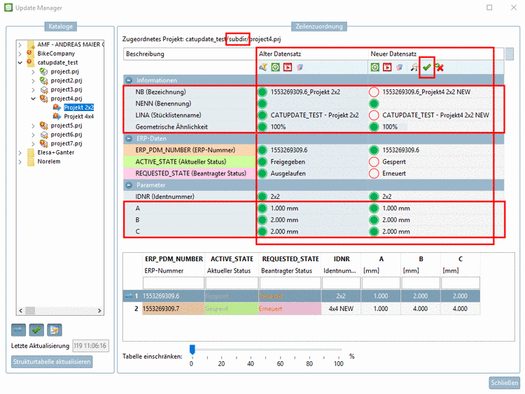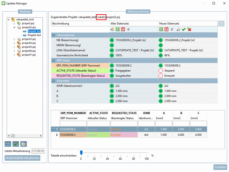 Öffnen Sie im Update Manager "project.prj" und selektieren Sie eine Zeile.