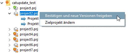 Ordnen Sie per Kontextmenübefehl Bestätigen und neue Versionen freigeben das ganze Projekt zu.