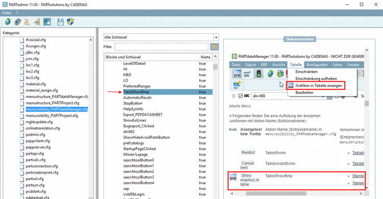 Alle Einstellungen werden mit Standard-Konfigurationsdateien unter PARTadmin -> Kategorie Konfigurationsdateien -> $CADENAS_Setup vorgenommen.