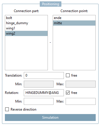 Die Min- und Max-Angabe wird benutzt, um die Einschränkung auch im CAD-System vorzugeben. Beispielsweise könnte sich ein Hebel nur im eingestellten Bereich bewegen.
