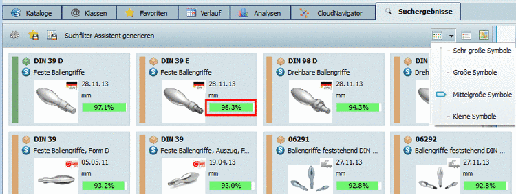 Teile, welche in den Bauteilvergleich übergeben wurden, werden mit einem speziellen Icon