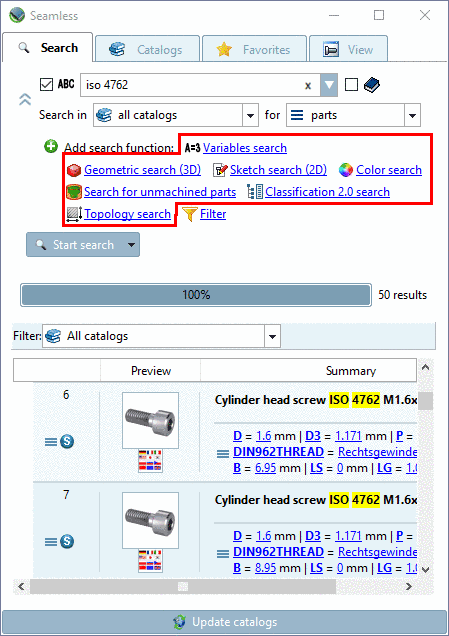 Detaillierte Informationen zu den einzelnen Suchmethoden finden Sie unter Abschnitt 3.1.6.4, „Suchmethoden“ in PARTsolutions - Handbuch für Anwender.