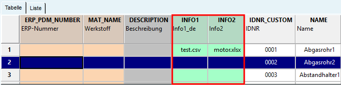 Außerdem können Dokumente (z.B. Word, Excel, PDF, Textdateien) im Nachhinein verlinkt werden. Diese erscheinen nach dem Export im PARTdataManager als grüne Dokumentenspalten.