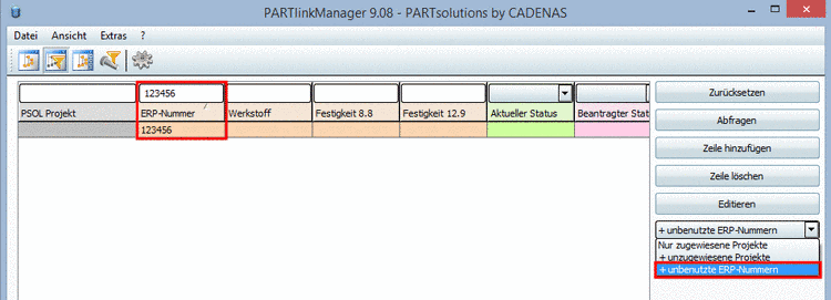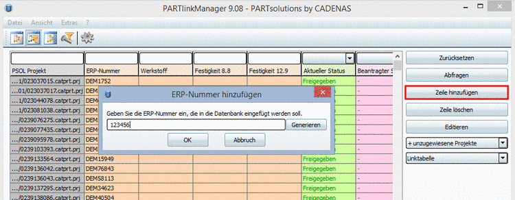 Um mittels PARTlinkManager eine neue ERP-Nummer zu vergeben und einem Bauteil zuzuweisen, gehen Sie folgendermaßen vor: