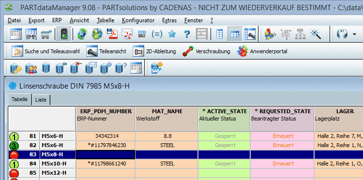 Wählen Sie im PARTdataManager in einem beliebigen Katalog, in beliebigem Projekt eine beliebige Zeile aus.