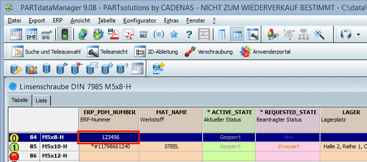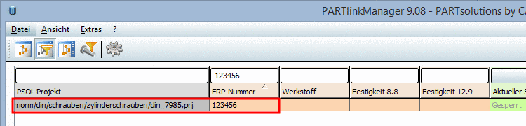 Der oben abgebildete Datensatz besteht nur aus einer ERP_PDM_NUMBER und muss noch mit einem Bauteil verknüpft werden.