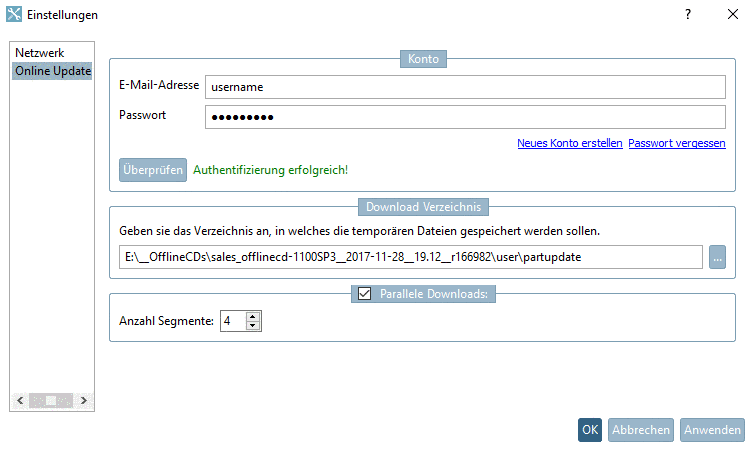 Bei aktivierter Option können Sie mittels Anzahl Segmente die Anzahl der parallel durchgeführten Downloads bestimmen. Bei höherem Wert nimmt die Downloadgeschwindigkeit zu. Default ist 1 (keine parallelen Downloads).
