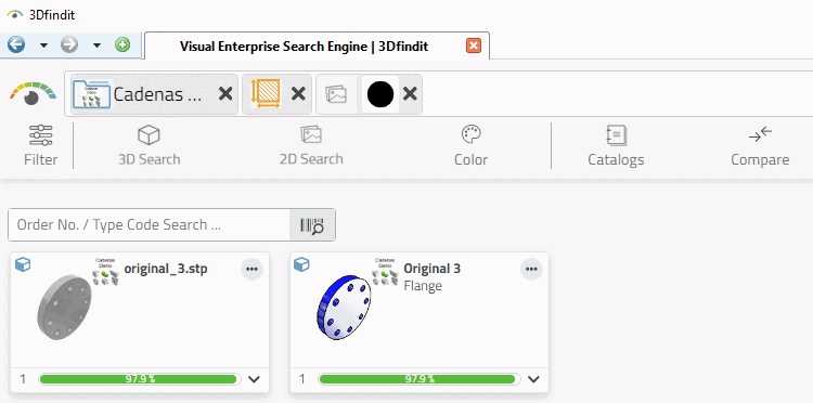 -> Der gesuchte Flansch ist nun in der Ergebnisliste vorne mit dabei.