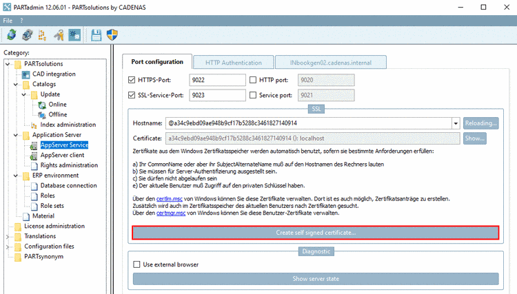 3.4.2.1. Create a self-signed certificate in PARTadmin on the PARTapplicationServer