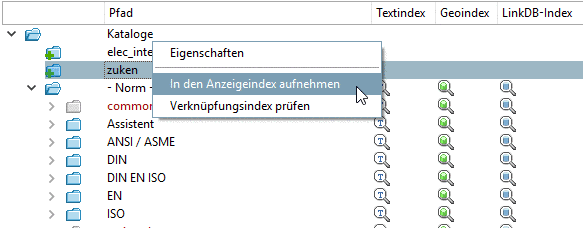 Indexverwaltung das entsprechende Icon