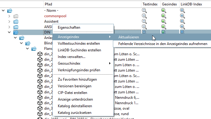 Nach Auswahl dieses Befehls wird das angeklickte Verzeichnis (Ordner) einschließlich aller Unterordner durchsucht und der Anzeigeindex aktualisiert.