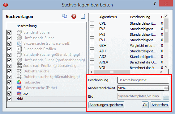 Hier können Sie den Namen Ihrer eigene Suchvorlagen editieren.