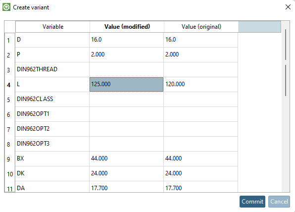 Als Ergebnis wird die angelegte Variante zusätzlich im PARTdataManager angezeigt.