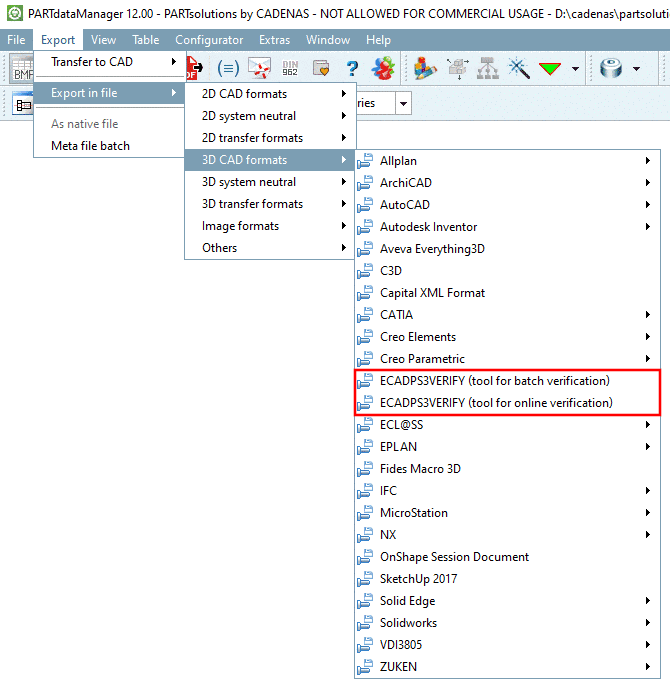 Gehen Sie zum 64-bit-Verzeichnis Ihrer PARTsolutions-Installation und lassen Sie die