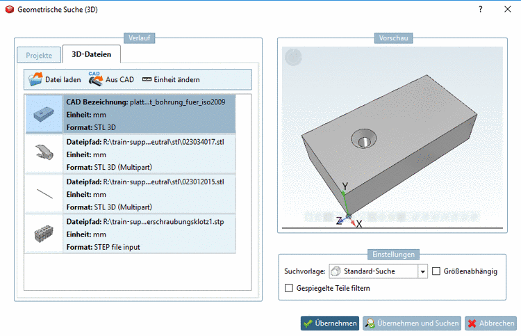 Bei denjenigen Suchvorlagen, die im PARTdataManager auf der Registerseite Geometrische Suche angezeigt werden sollen (egal ob Default-Vorlagen oder eigene), aktivieren Sie das Kontrollkästchen.