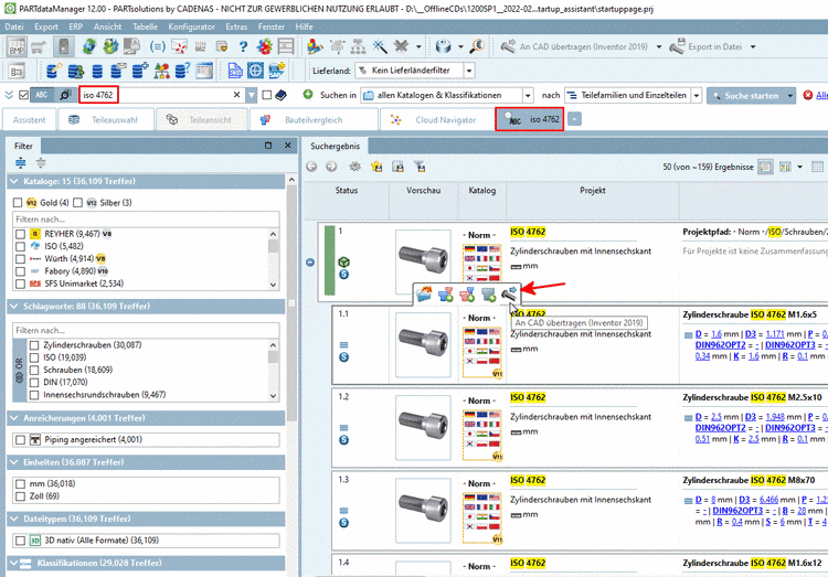 Im Folgenden ist beschrieben, wie Sie 3D-Einzelteile aus der Norm- und Kaufteile Bibliothek in Ihr 3D-CAD-System einfügen.