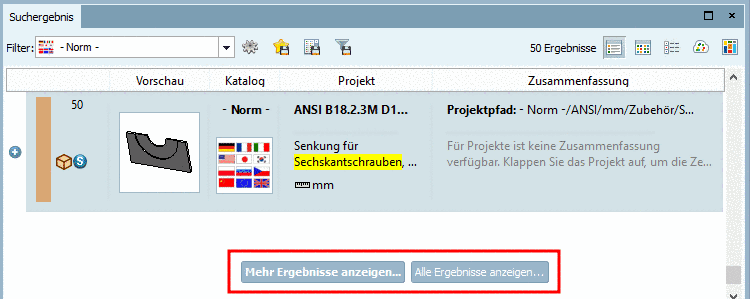 Weitere Informationen zum Dialogbereich Suchergebnisse: