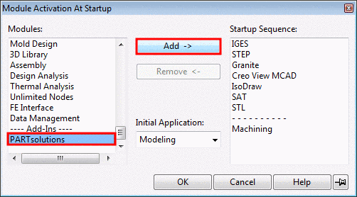 Fügen Sie PARTsolutions zur Startfolge hinzu.