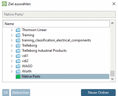 Selektieren Sie den Ordner, in den Sie das Bauteil aufnehmen möchten und bestätigen Sie mit .