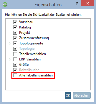 Tabellenvariablen sind per Default eingeschaltet. Zum Ausschalten gehen Sie folgendermaßen vor: