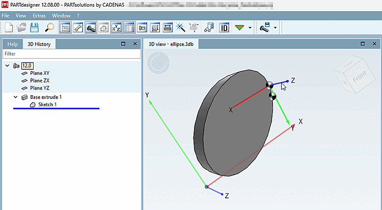 Nach dem Klicken auf OK werden die Änderungen übernommen und in der 3D Historie [3D History] sowie in der 3D Ansicht [3D view] angezeigt. Änderungen können jederzeit mit einem Doppelklick auf die Ebene in der 3D Historie [3D History] vorgenommen werden.