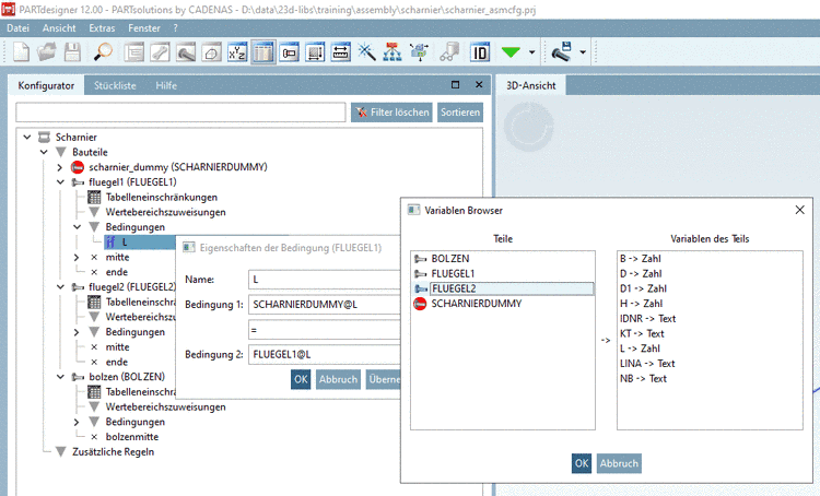 Voraussetzungen erfüllt, werden in PARTproject nach Selektion der