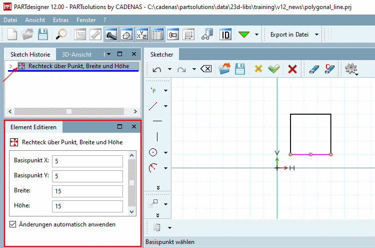 Lösung: Öffnen Sie .3db in PARTdesigner. Finden Sie den Fehler im Sketcher mittels Teil Überprüfen