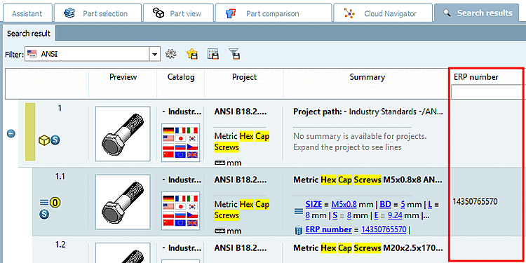 Im Suchergebnis will man z.B. sehen, wie viele Bohrungen Teile haben, weil man das in der Vorschau evtl. nicht erkennen kann oder man möchte beispielsweise standardmäßig die Längste Ausdehnung [Largest dimension], Mittlere Ausdehnung [Middle dimension] und Kürzeste Ausdehnung [Shortest dimension] sehen.