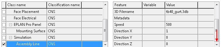 Selektieren Sie im Falle eines Förderbands die Klasse unter Simulation -> Assembly Line.